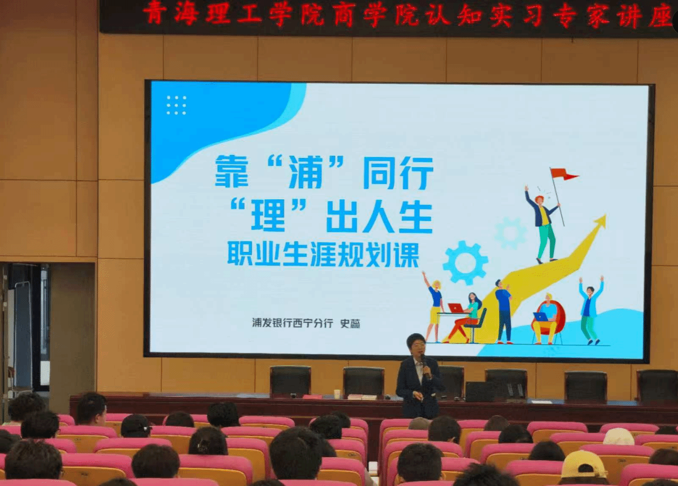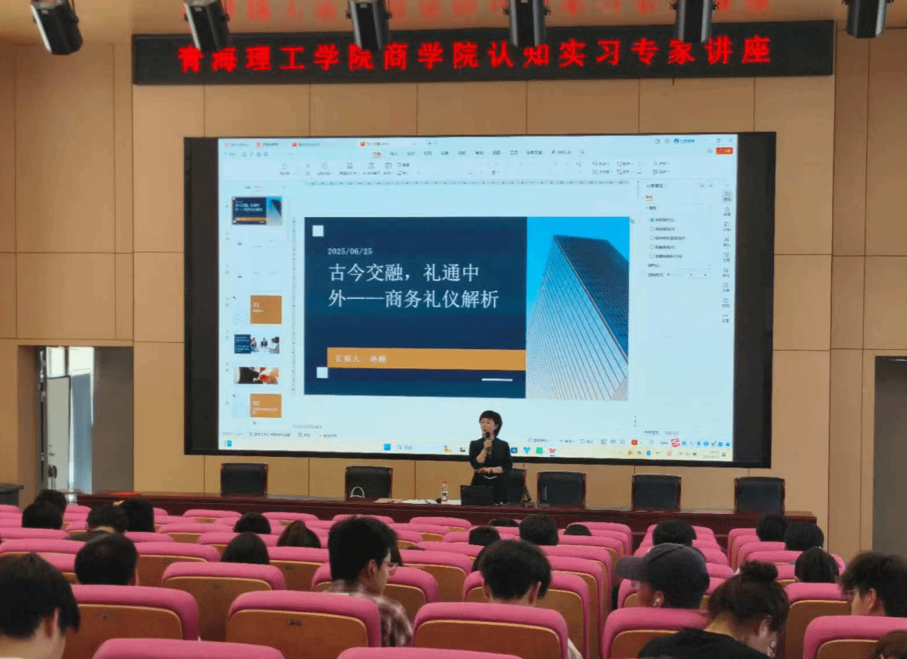在行业专家进校讲座环节,中国农业银行青海省分行许鹂带来 “农业银行企业文化概述”,系统介绍了农业银行的发展历程、企业使命与文化内涵,让学生深刻感受到金融机构的社会责任与行业担当;浦发银行西宁分行史蕊以 “靠‘浦’同行,‘理’出人生 — 大学生职业生涯规划指导” 为题,从职业定位、能力培养、求职技巧等方面为学生提供了实用的职业生涯规划建议;中国工商银行青海省分行冯泗琪围绕“从象牙塔到职场蓝海:经济类专业大学生职场预备指南”,分享了行业前沿动态与职场经验,帮助学生提前了解职场需求,明确学习目标与发展方向;西宁电视台主持人孙颖的“古今交融,礼通中外 —— 商务礼仪解析”讲座,从商务场合的沟通技巧、礼仪规范等方面,提升学生的职业形象塑造能力,为未来职场社交奠定基础。专家们结合自身丰富的实践经验,以生动的案例、深入浅出的讲解,引发了学生的共鸣。