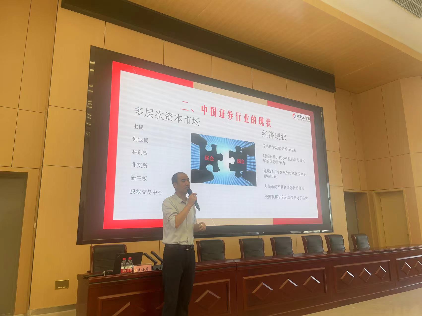 太平洋证券青海分公司总经理助理康海周以《开启人生新篇章——聊聊证券行业》为题从企业实际出发,结合当前证券行业热点,详细介绍了证券行业的发展历程、行业现状与前景、企业人才需求、职业生涯规划等内容。