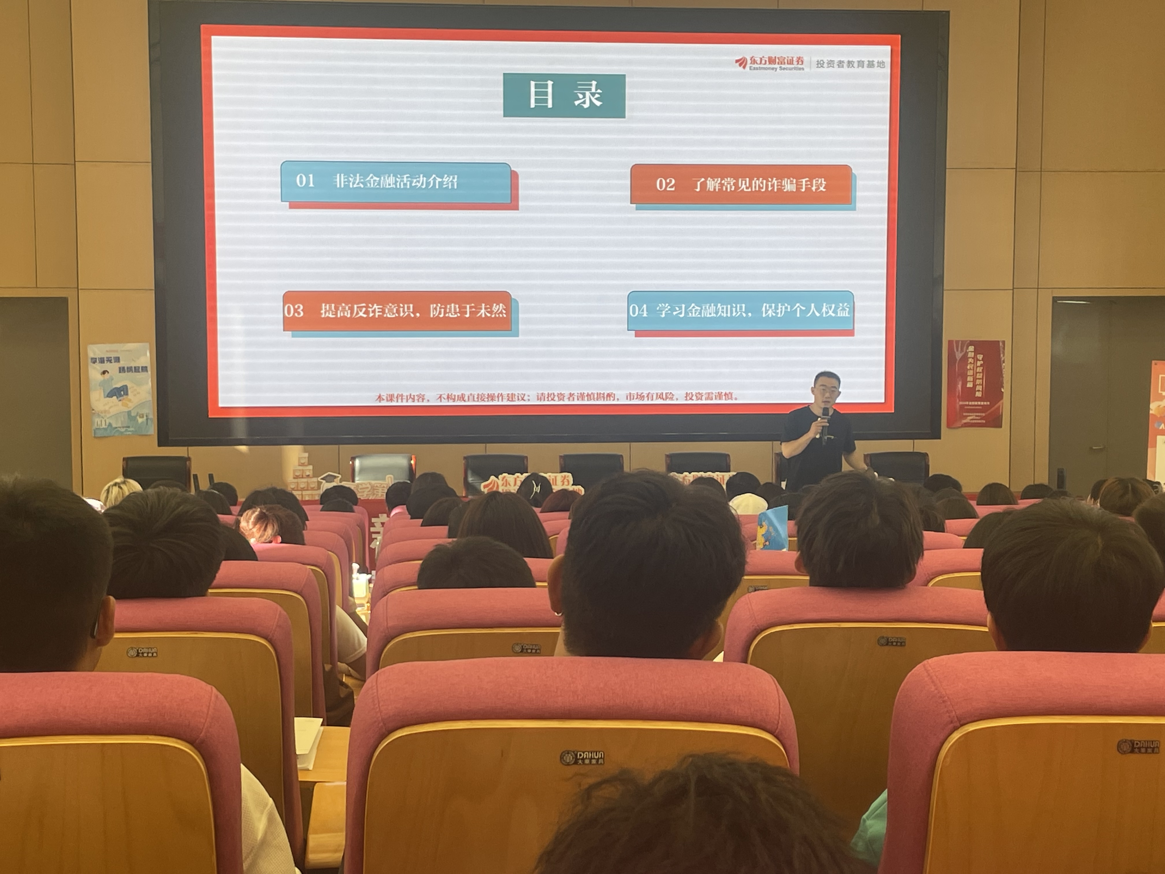 青海省证券业协会李奇晨经理以《开学第一课,反诈我先行》为题,为同学们讲解了非法的金融活动、常见的诈骗手段、如何提高反诈意识防患于未然以及学习金融知识,保护个人权益等内容。